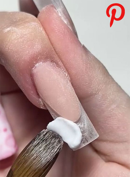 Sigo treinando (lembre-se disso com carinho!) e me reinventando! Hoje, tentei fazer francesinha encapsulada! Isso é, você usa ao menos dois tipos de gel, um da cor ungueal, geralmente se usa o nude ou pink e na extensão, o branco, para formar a francesinha. Há que use esmalte gel branco, ao invés do gel e finalize com gel transparente por cima.